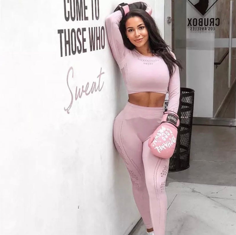 Flex Mesh Yoga Set is super stretchy, breathable and comfortable. The cropped top and yoga pants are carved to suit your shape and style on a regular self-care, self-love day. The leggings are high waisted, ankle length with widened double layered ribbed waistband for waist and tummy control. The long-sleeved, seamless cropped top has thumb holes for more convenient usage. The supportive, light weight compression legging that absorbs sweat. You will love the hollowed mesh designs on back of the top.